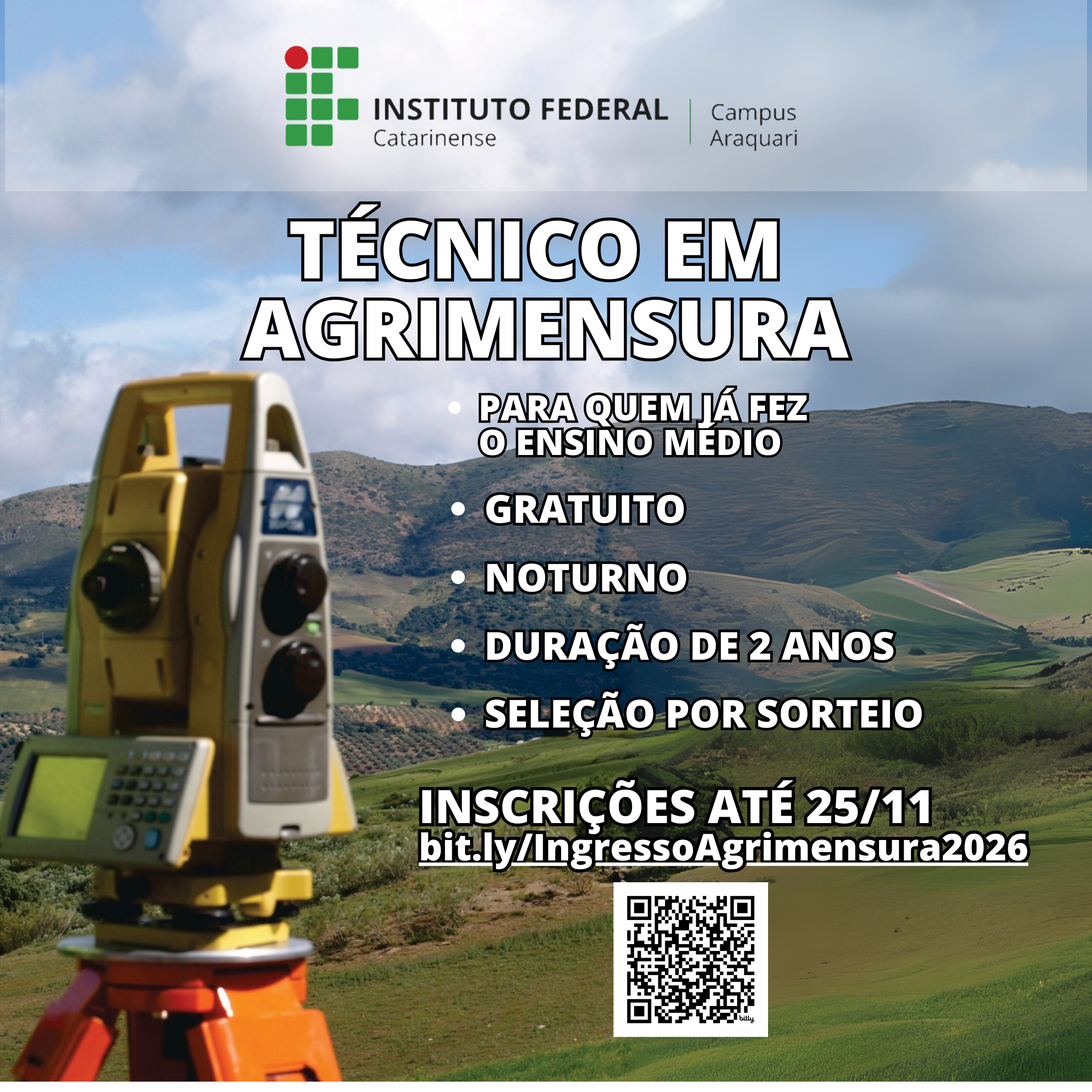 O Curso Técnico em Agrimensura do IFC Araquari é Subsequente, ou seja, para quem já terminou o Ensino Médio.