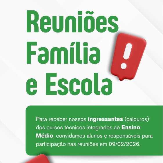 O Instituto Federal Catarinense (IFC) Campus Araquari convida os estudantes ingressantes (calouros) dos cursos técnicos integrados ao Ensino Médio e seus respectivos pais ou responsáveis para as primeiras reuniões do ano letivo de 2026.