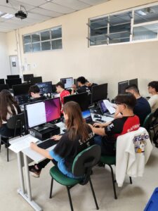 No último fim de semana (21 e 22 de novembro), nossos estudantes do Curso Técnico Integrado em Informática para Internet, acompanhados pelos professores , Eduardo da Silva, Fábio Longo de Moura, Ivo Marcos Riegel e Marco Antonio Torrez Rojas tiveram que lidar com desafios reais do mercado de trabalho durante a realização do Hackaton dos Terceiros Anos, um evento que não ocorre desta forma em qualquer lugar! Eles começaram cedo na sexta feira (8h da manhã) a sua jornada intensa de aprendizado, colaboração e desenvolvimento e continuaram 24 horas trabalhando para apresentar no sábado para as empresas.